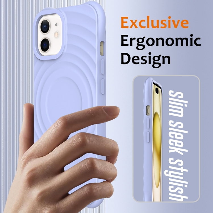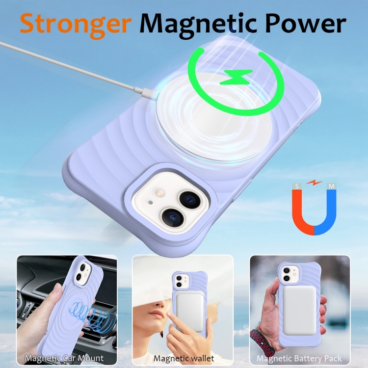 Funda para Teléfono iPhone 12 Silicona Líquida Magnética Magsafe Textura Ondulada (Púrpura)