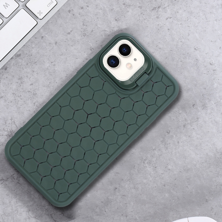 Funda para Teléfono TPU iPhone 12 Soporte Radiante Panal con Cordón (Verde)