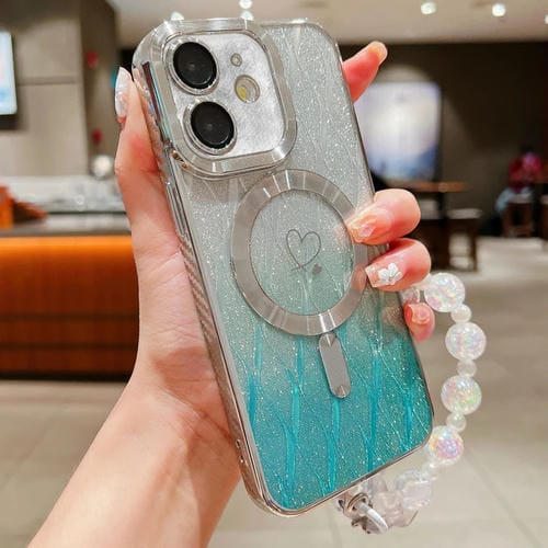 Funda para Teléfono iPhone 12 Loves Leaves Pulseras con Brillo Degradado Magsafe TPU Fibra de Carbono (Verde)