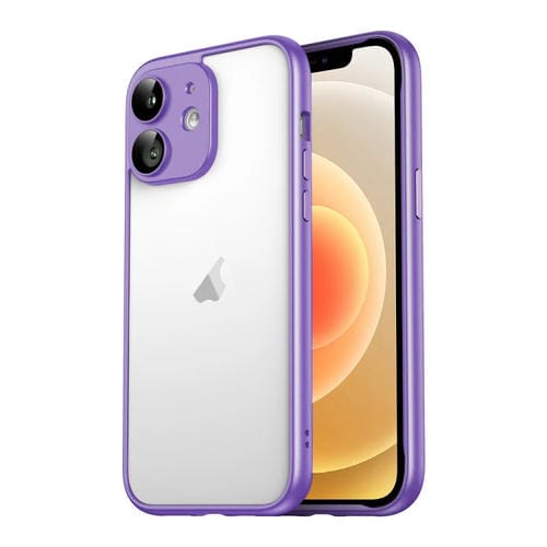 Marco de Borde PC para iPhone 12 Macaron con Película de Vidrio para Lentes (Púrpura)