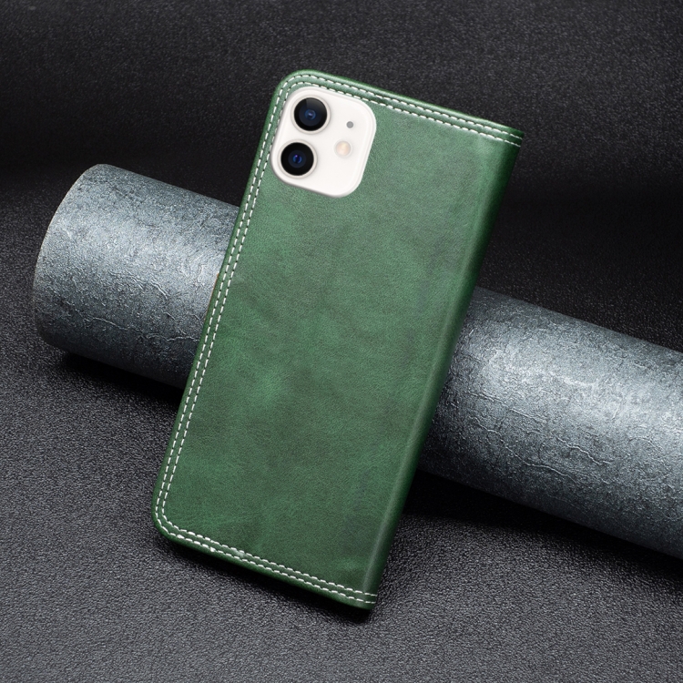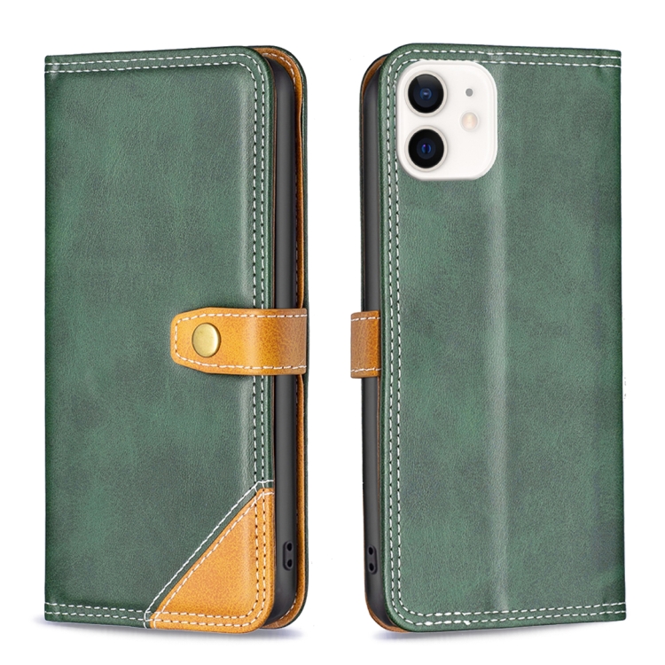 Estuche de Cuero para iPhone 12 Mini con Hilo de Coser Doble a Juego de Colores (Verde)