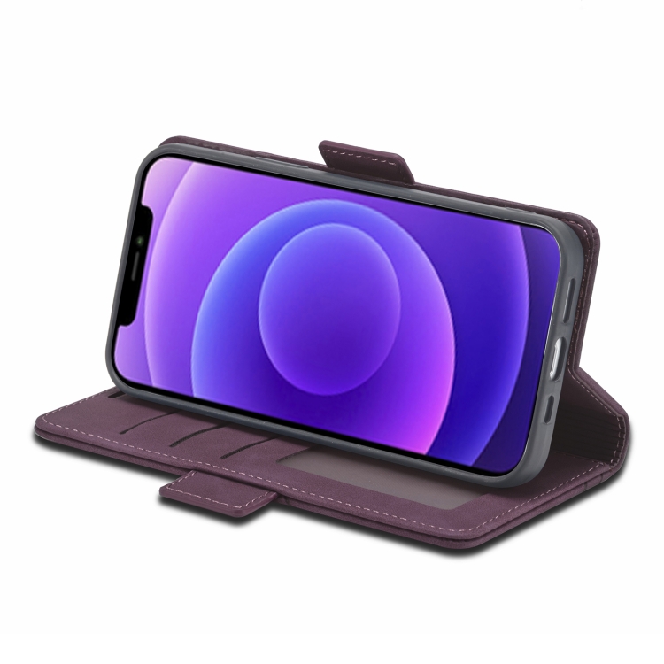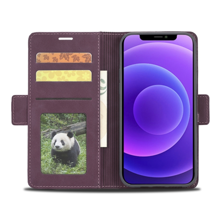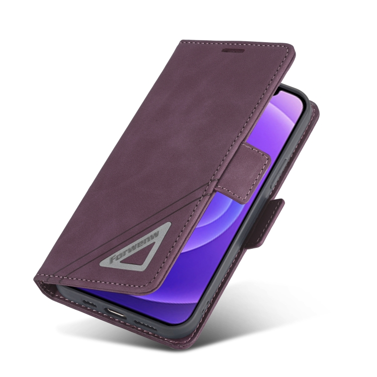 Funda de Cuero FoRWenw para iPhone 12 Mini con Hebilla de Doble Cara (Rojo Vino)