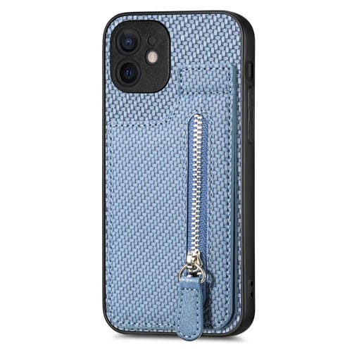 Funda de teléfono iPhone 12 Mini con cremallera vertical de fibra de carbono (Azul)