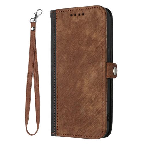 Funda para iPhone 12 Mini Hebilla Lateral Doble Pliegue Correa de Mano Cuero (Marrón)
