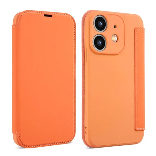 Funda para Teléfono iPhone 12 Mini Imitación Cuero Sensación Piel Líquida Ranuras para Tarjetas (Naranja)