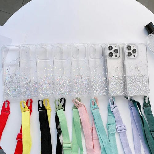 Funda para iPhone 12 Mini Lanyard Glitter Epoxy Clear Phone Case (Rosa)