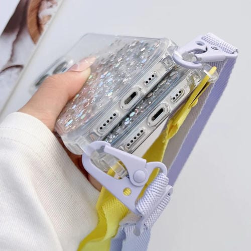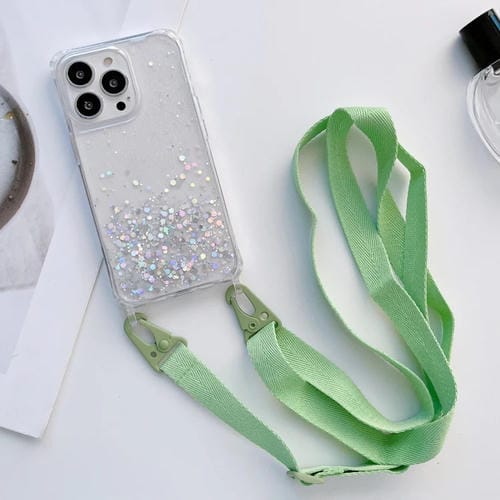 Funda para iPhone 12 Mini Lanyard Glitter Epoxy Clear Phone Case (Verde)