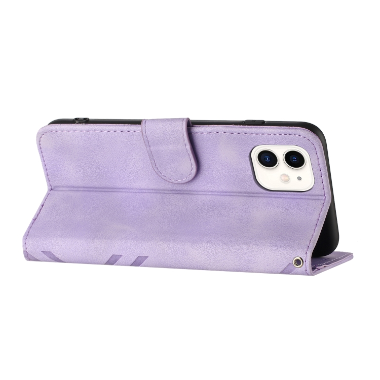 Funda de Cuero para iPhone 12 Mini Line Pattern Skin Feel (Púrpura Claro)