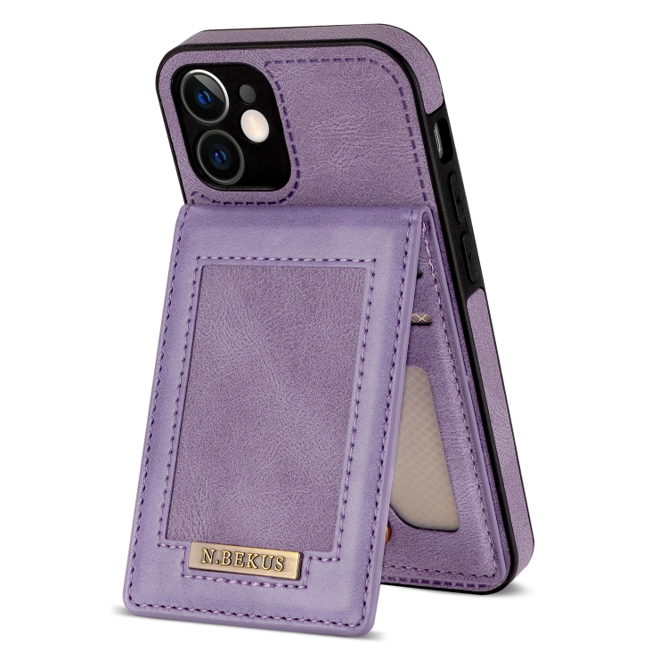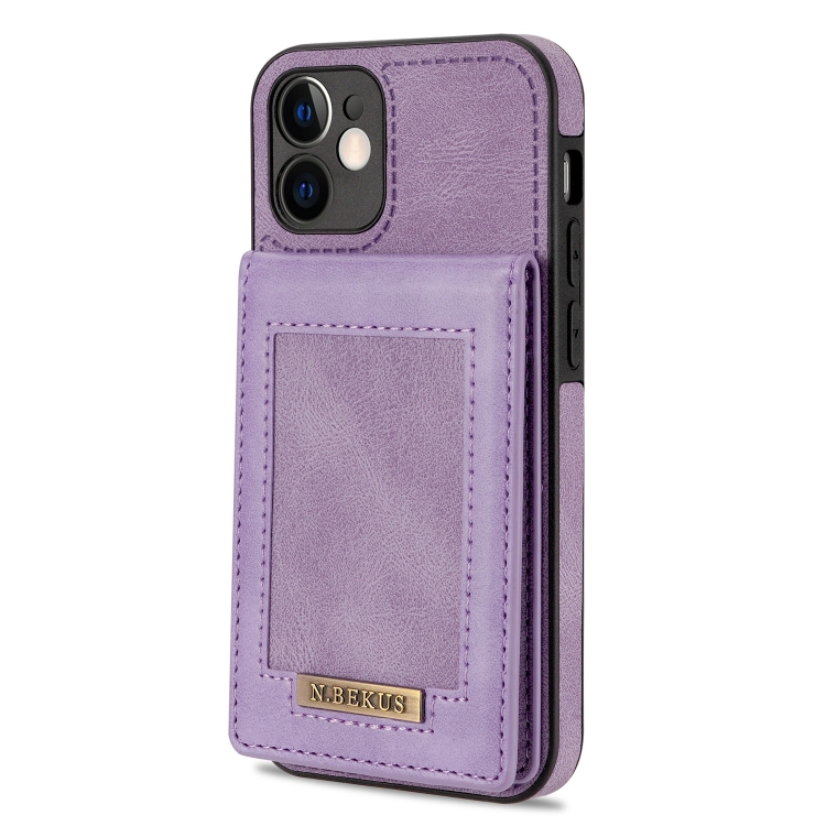 Funda para iPhone 12 Mini N.Bekus Vertical Flip con Ranura para Tarjetas y RFID (Púrpura)