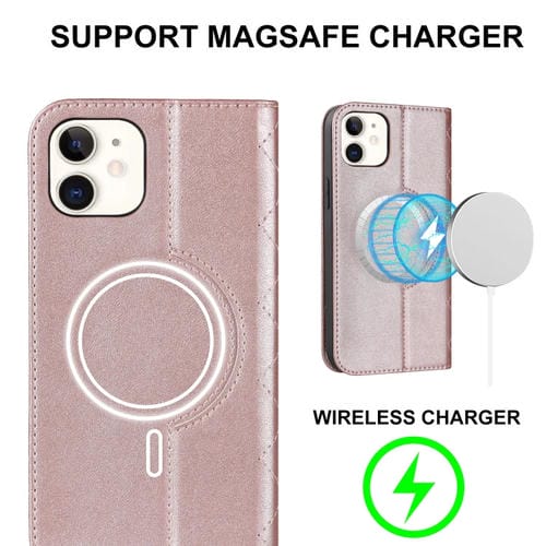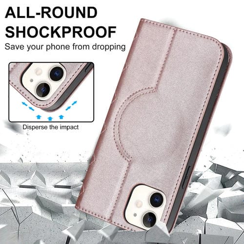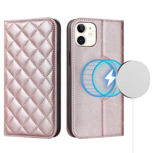 Funda para iPhone 12 Mini Rhombic Magsafe Rfid Cuero Antirrobo (Oro Rosa)