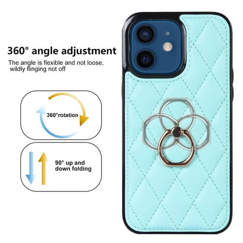 Funda para iPhone 12 Mini Rhombic PU Cuero con Soporte para Anillo (Azul)