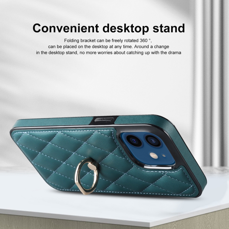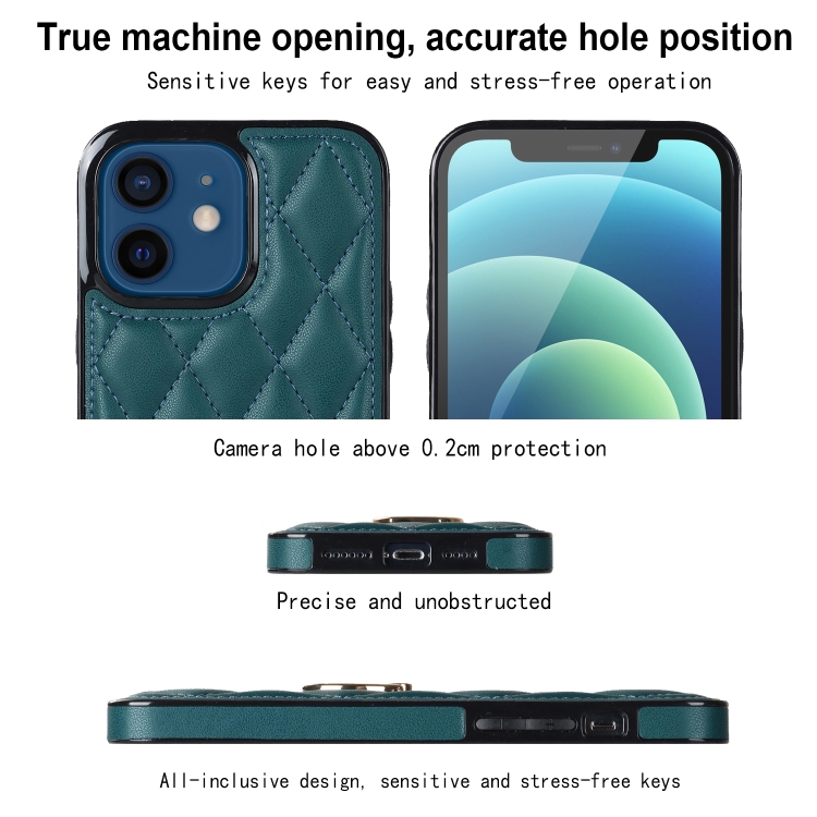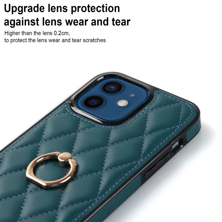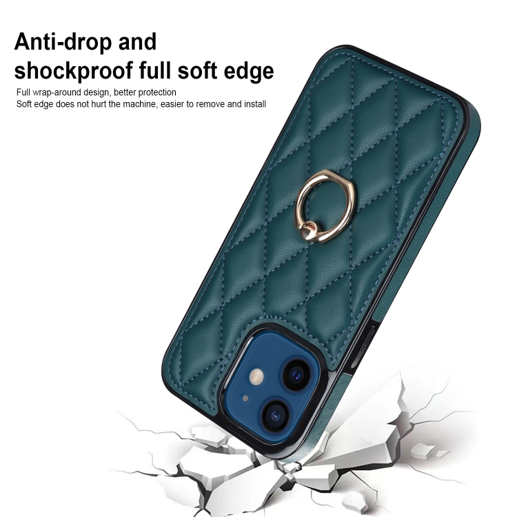 Funda para teléfono iPhone 12 Mini Rhombic PU Cuero con Soporte para Anillo (Verde)