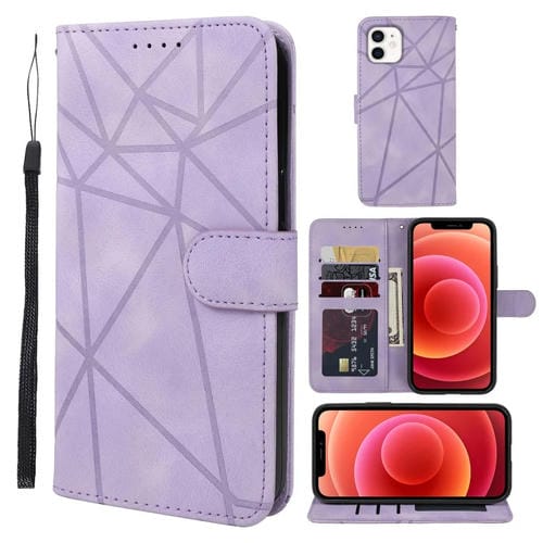 Funda para teléfono iPhone 12 Mini Skin Feel Cuero Líneas Geométricas (Púrpura)