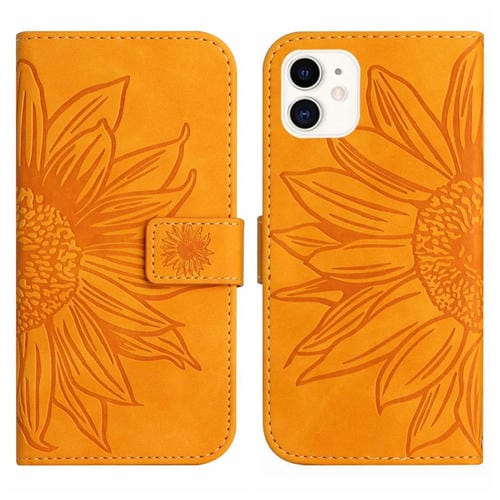 Funda de Cuero Flip para iPhone 12 Mini Skin Feel Sun Flower Pattern con Cordón (Amarillo)