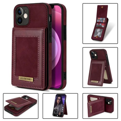 Estuche para Teléfono N.Bekus iPhone 12 con Ranura para Tarjeta y Tapa Vertical Rfid (Rojo Vino)