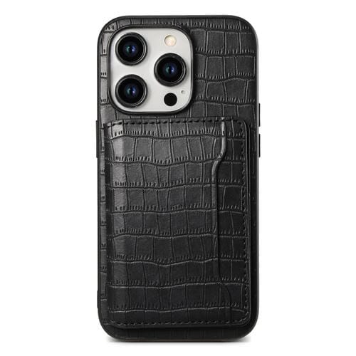 Estuche para teléfono iPhone 12 Pro / 12 con diseño bolsa para tarjetas textura de cocodrilo (Negro)