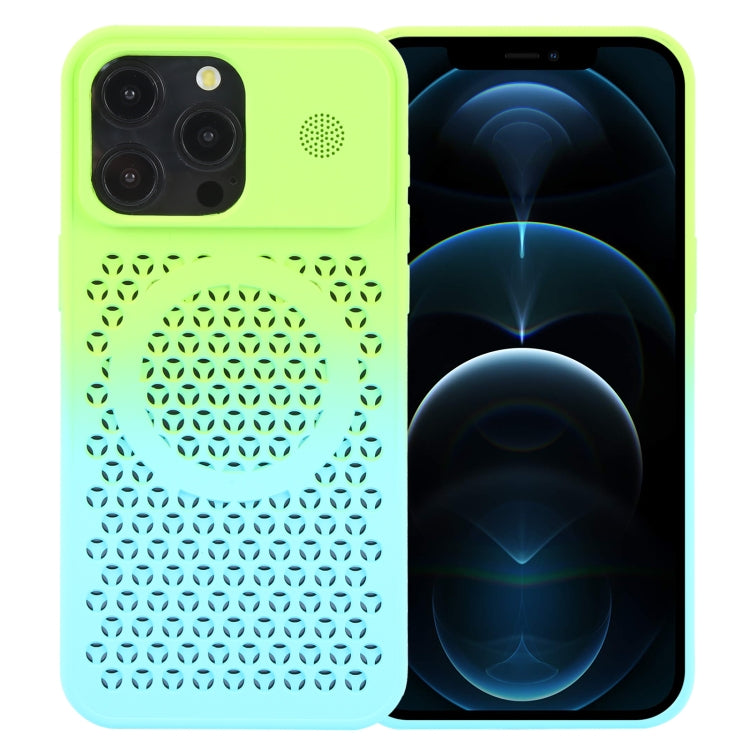 For iPhone 12 Pro Magnetic Phone Case Aromatherapy Cooling Honeycomb Case (Green Blue)