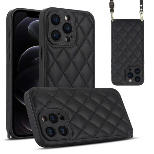 Estuche para Teléfono iPhone 12 Pro Textura Rómbica Cordón Doble (Negro)