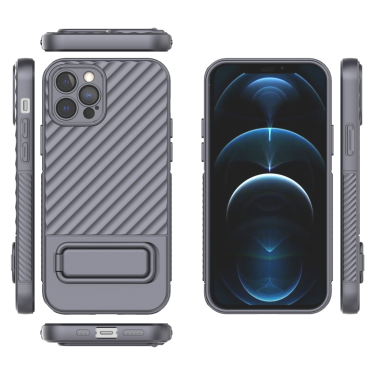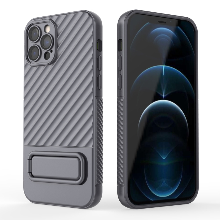 Funda de Teléfono TPU para iPhone 12 Pro con Textura Ondulada y Película de Lente (Gris)