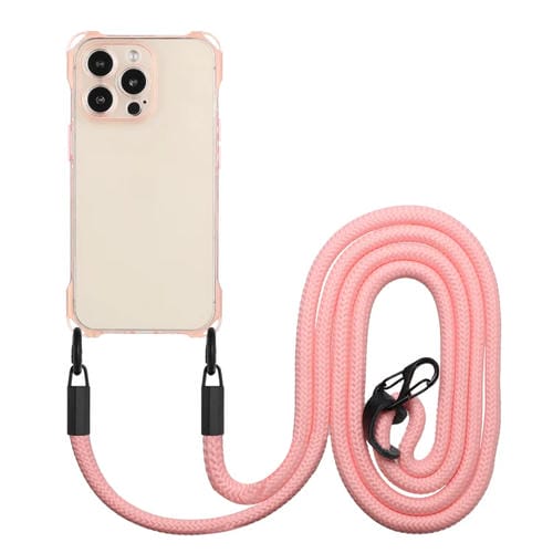 Funda para Teléfono TPU Apple iPhone 12 Pro a Prueba de Golpes Cuatro Esquinas con Cordón (Rosa)