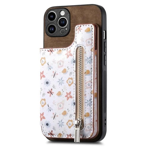 Funda Trasera para iPhone 12 Pro con billetera y cremallera pintada retro (Marrón)