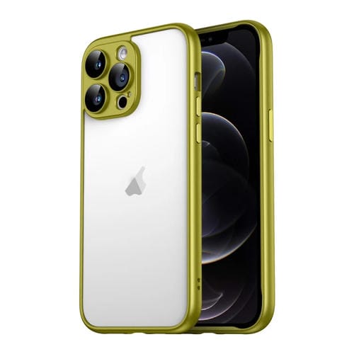 Funda para iPhone 12 Pro Macaron PC Phone Marco de Borde Puro con Película de Vidrio para Lentes (Verde)