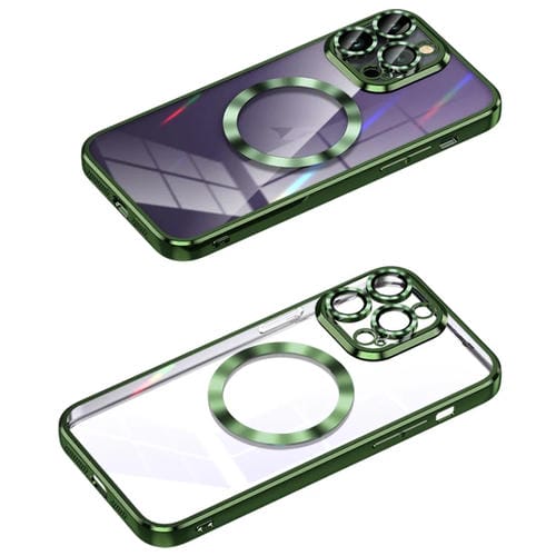 Estuche para teléfono iPhone 12 Pro Magsafe Cd Texture Marco de Lente de Metal Cobertura Total (Verde)