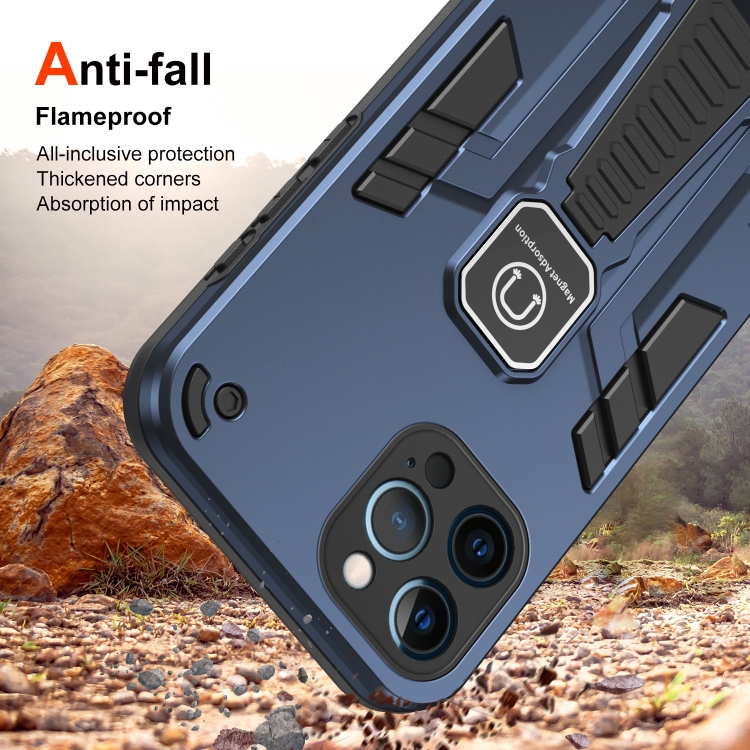 For iPhone 12 Pro Max 2 in 1 Shockproof Kickstand Phone Case (Blue)