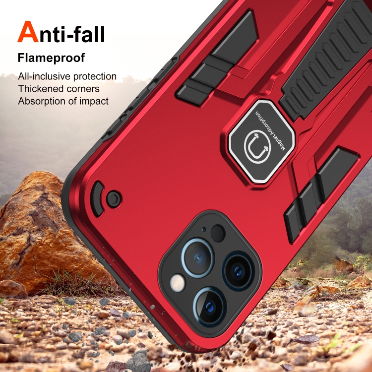 For iPhone 12 Pro Max 2 in 1 Shockproof Kickstand Phone Case (Red)