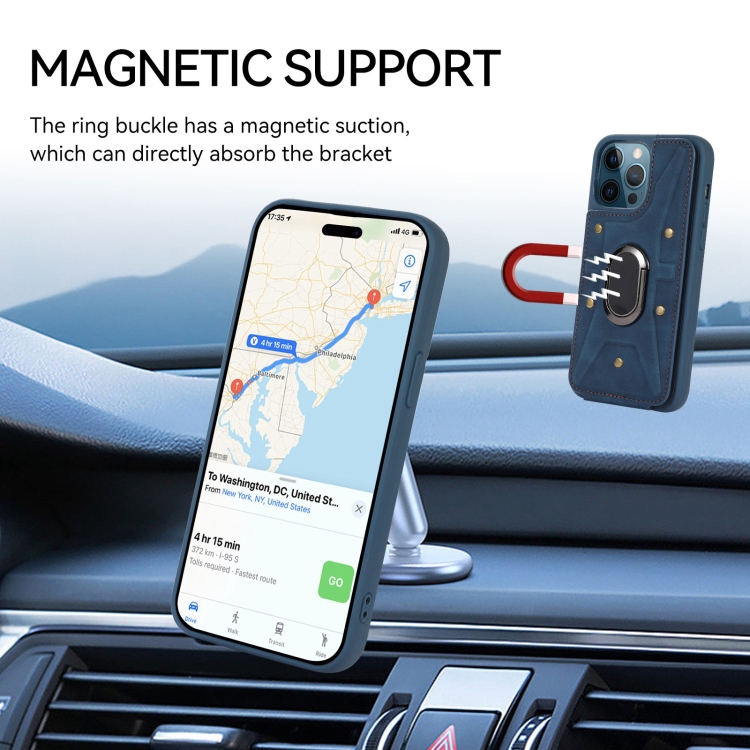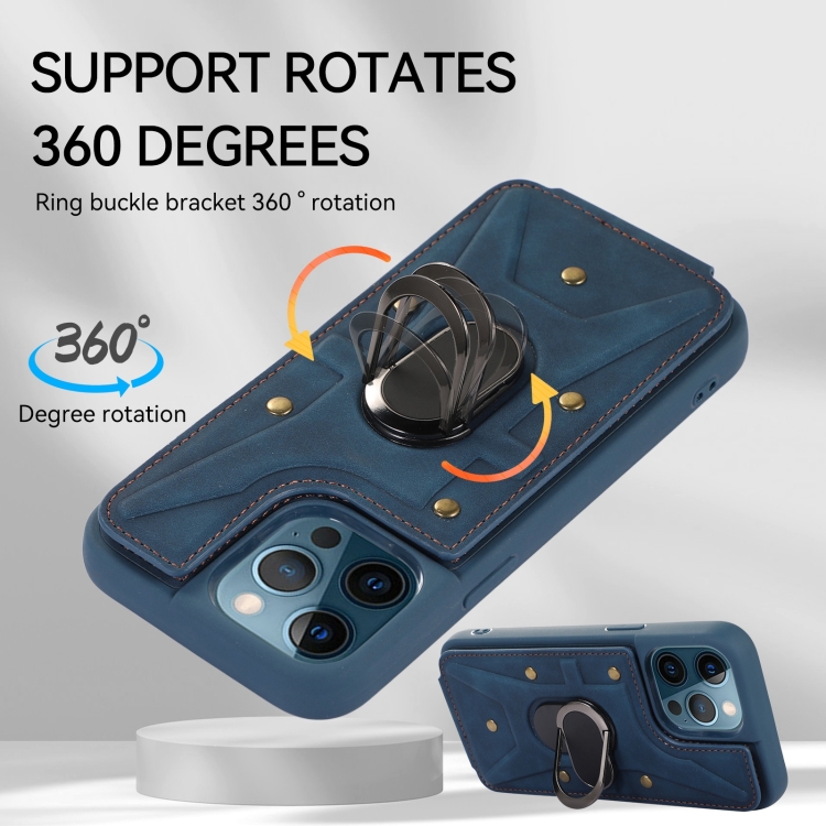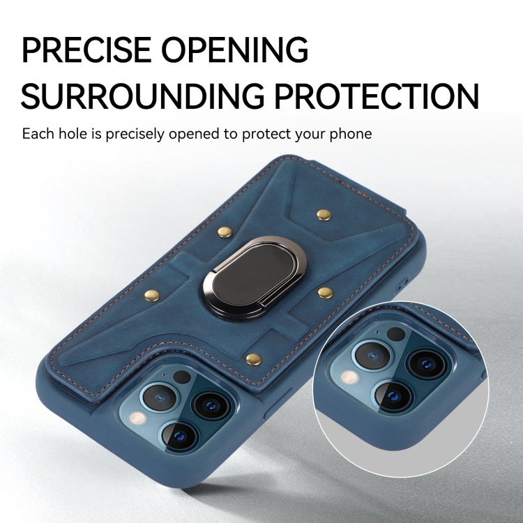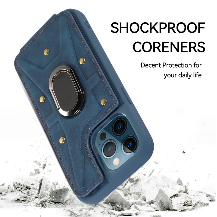 Funda para iPhone 12 Pro Max Armor Ring Wallet Back Cover (Azul)