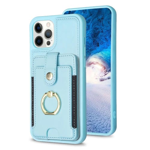 Funda para iPhone 12 Pro Max Bf27 Anillo de Metal Tarjeta Bolsa Titular Caja del Teléfono (Azul)