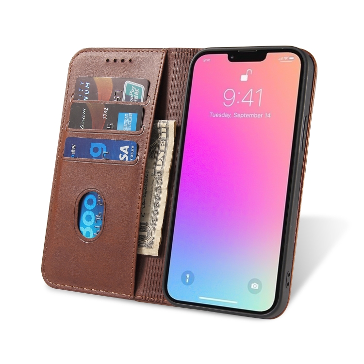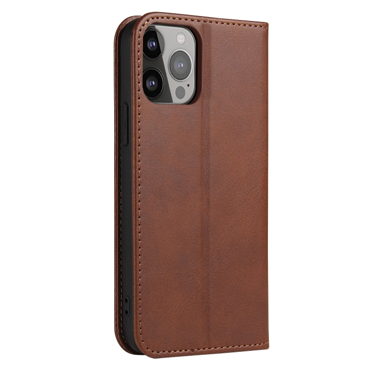 Funda de Cuero iPhone 12 Pro Max Calf Texture Tapa Horizontal Magnética Soporte Ranuras Tarjetas (Marrón)
