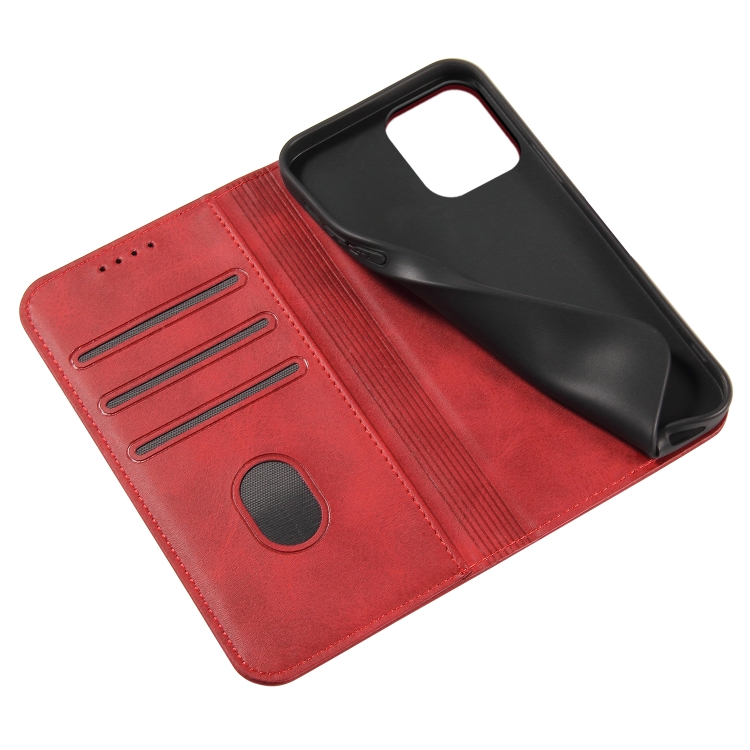 Funda de Cuero para iPhone 12 Pro Max Calf Texture con Tapa Horizontal Magnética, Soporte y Ranuras para Tarjetas (Rojo)
