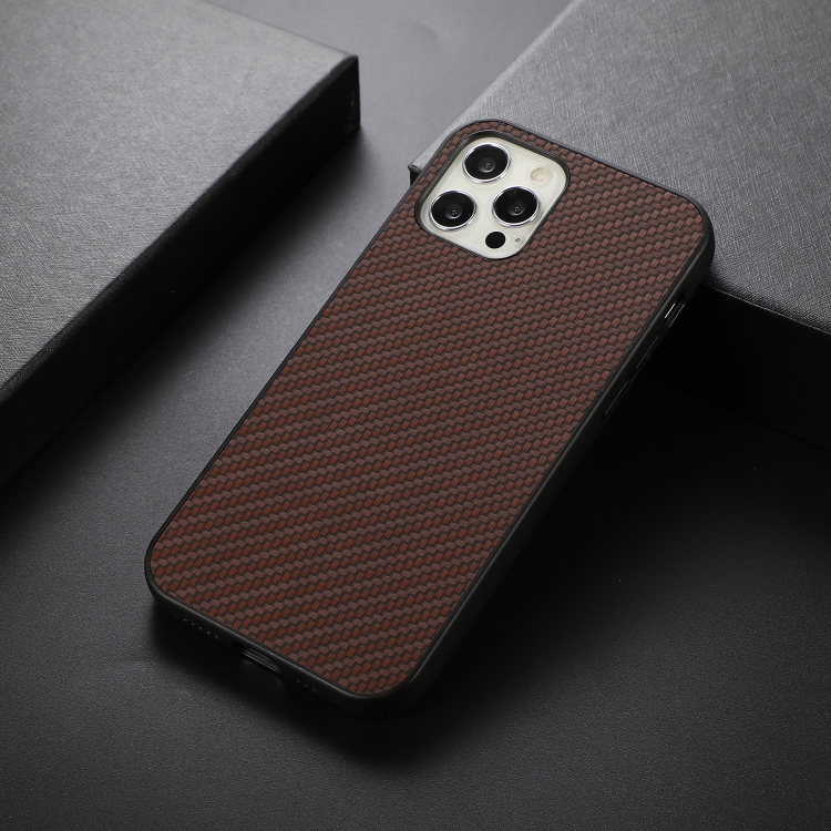 Funda Protectora para iPhone 12 Pro Max Carbon Fiber Skin Pu + PC + TPU Shockprof (Marrón)