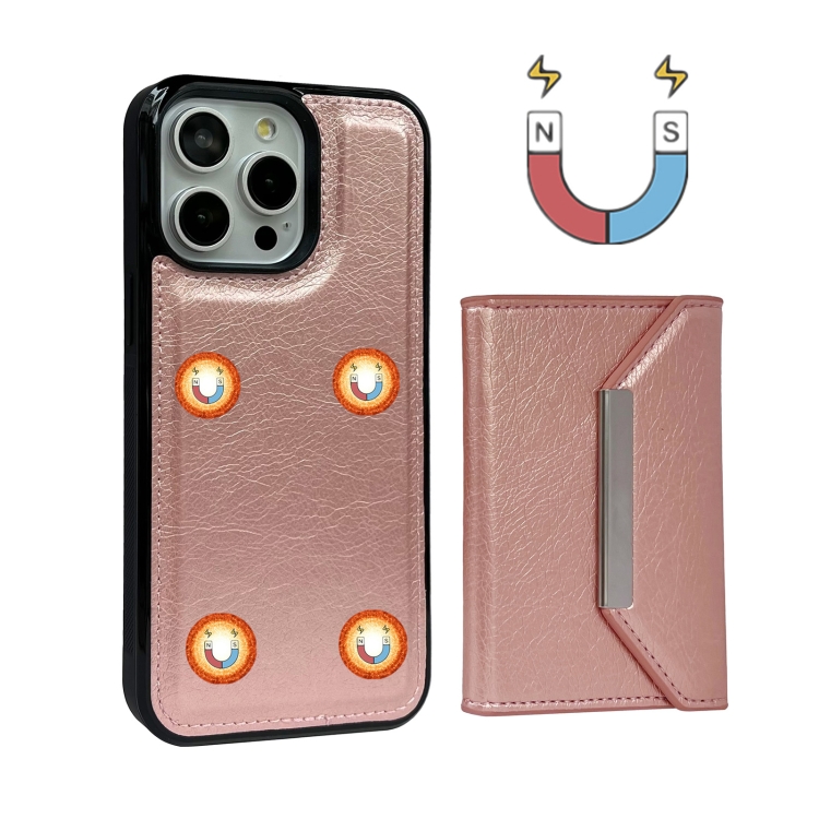 Funda para Teléfono iPhone 12 Pro Max Hebilla de Metal Ranuras para Tarjetas (Oro Rosa)