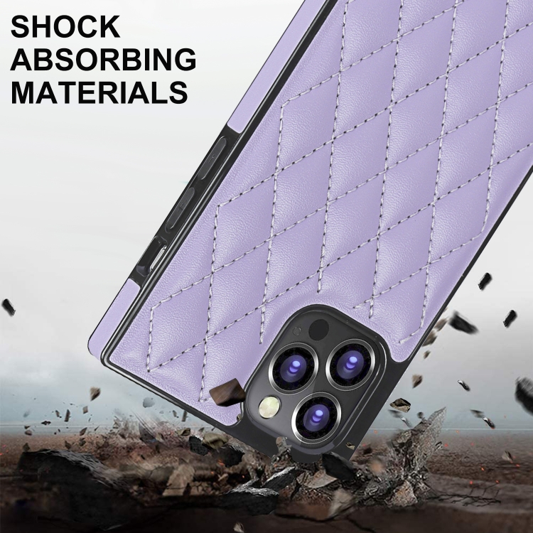 Funda para iPhone 12 Pro Max Cuero de Microfibra + TPU Patrón Rombal a Prueba de Golpes con Cadena (Púrpura)