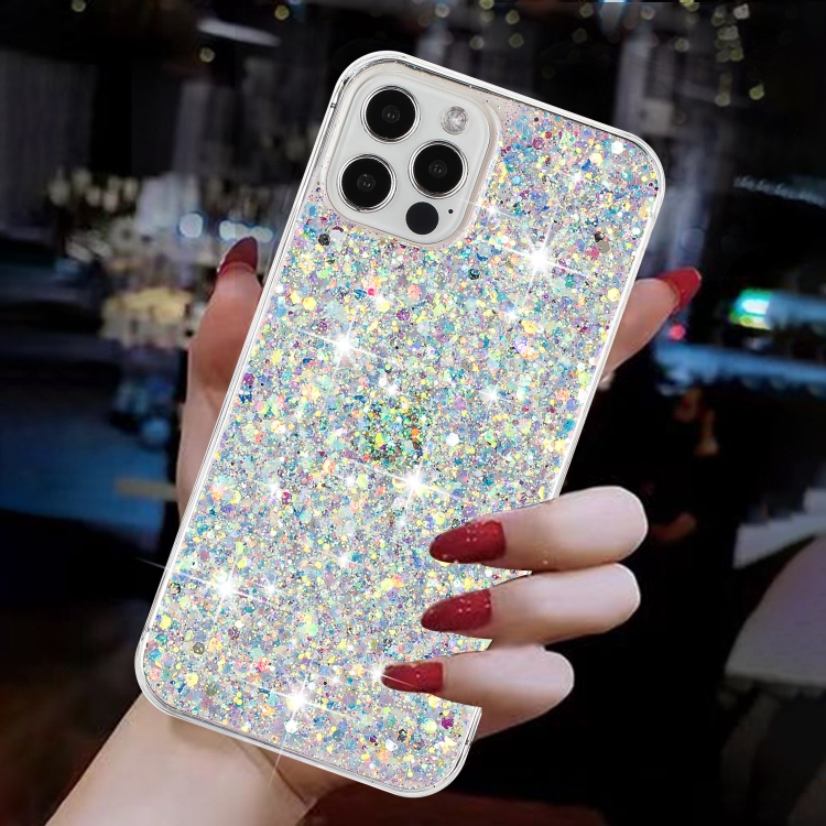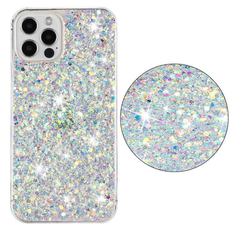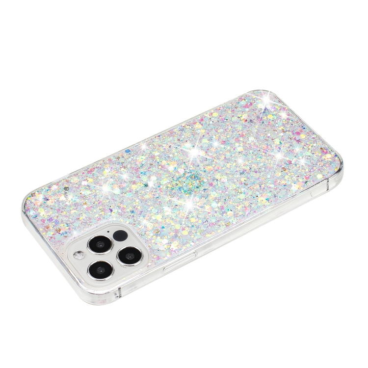 Estuche para teléfono iPhone 12 Pro Max TPU Transparente con Purpurina en Polvo (Blanco)