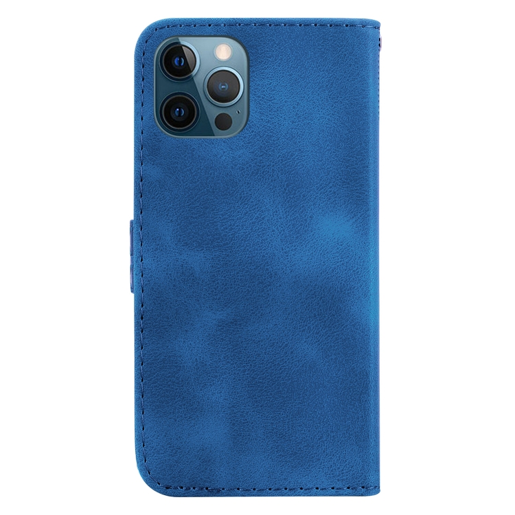 Funda de Teléfono iPhone 12 Pro Max Cuero En Relieve En Forma de 7 (Azul)