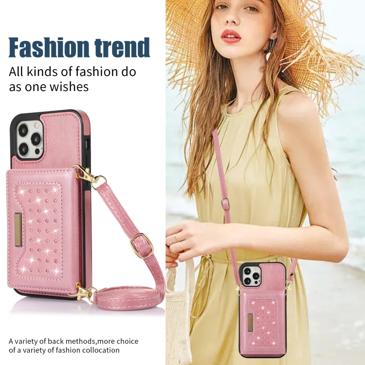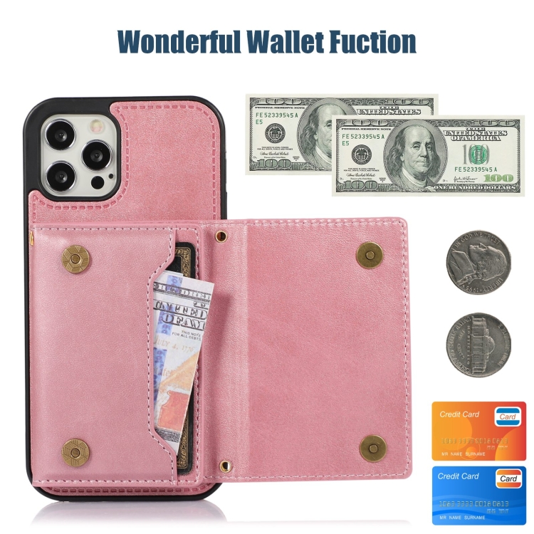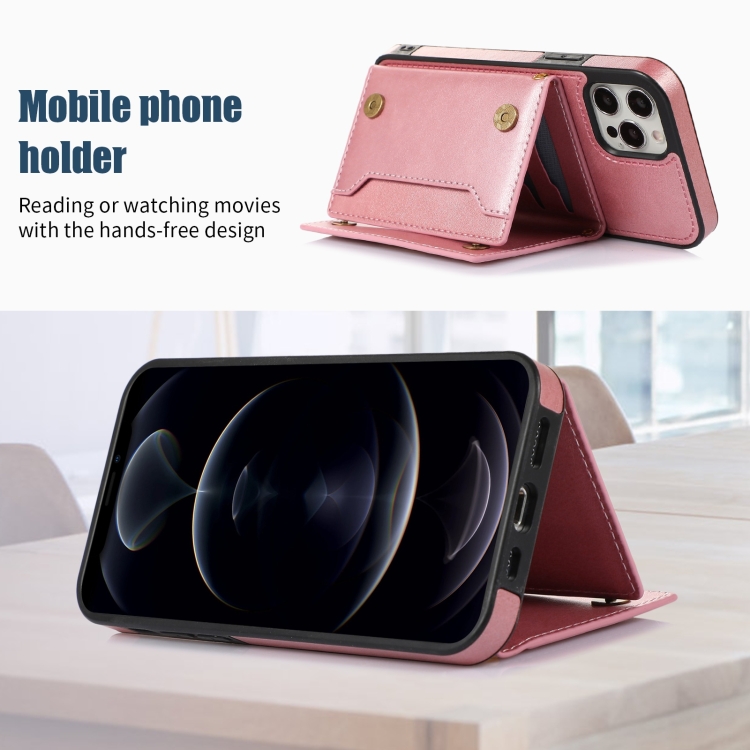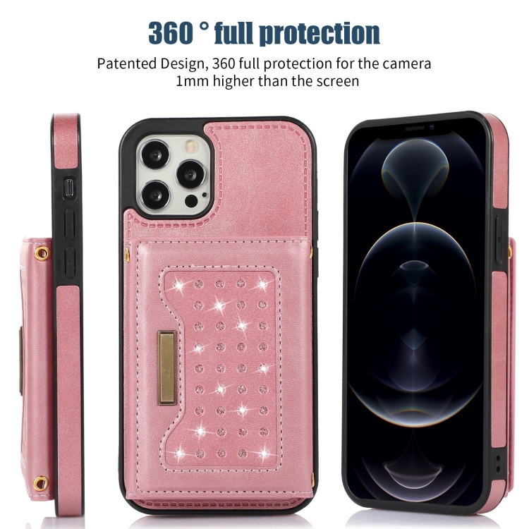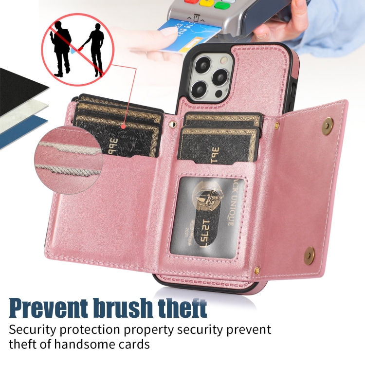 Funda de Teléfono iPhone 12 Pro Max Cuero Rfid Tres Pliegues con Cordón (Oro Rosa)