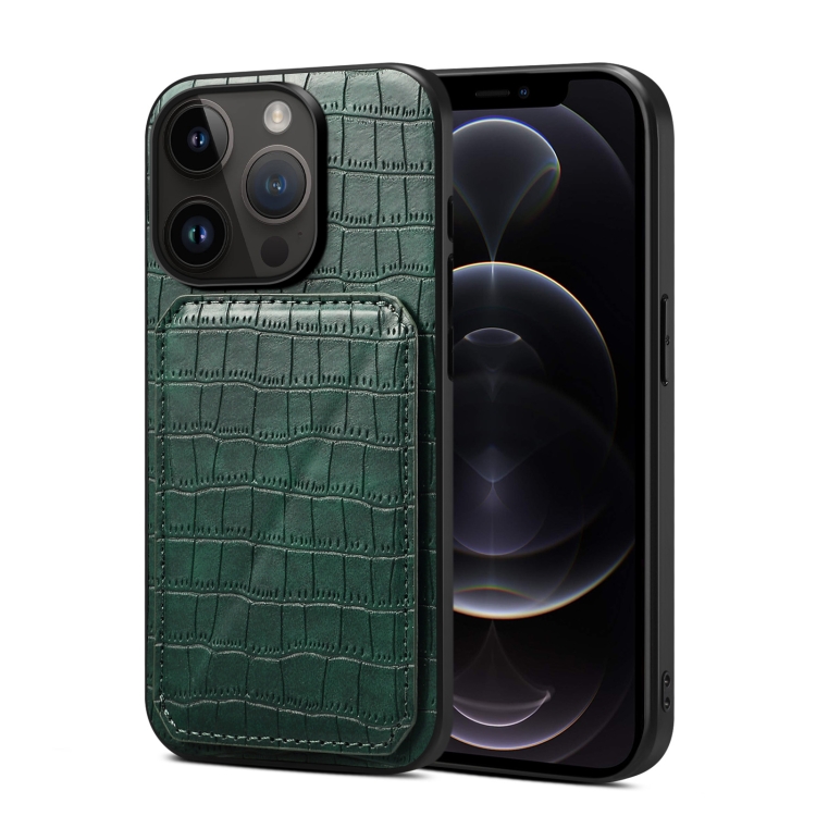 For iPhone 12 Pro Max Faux Crocodile Leather Phone Back Case Cover with Kickstand (White)