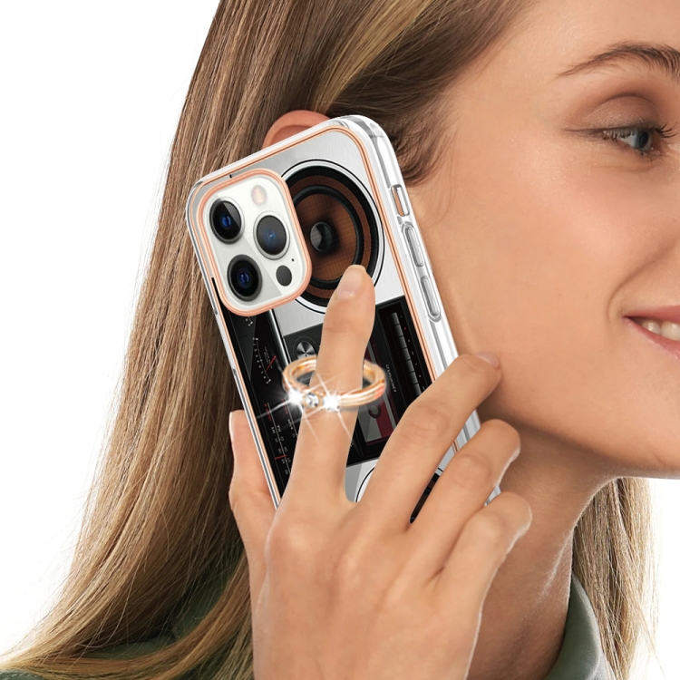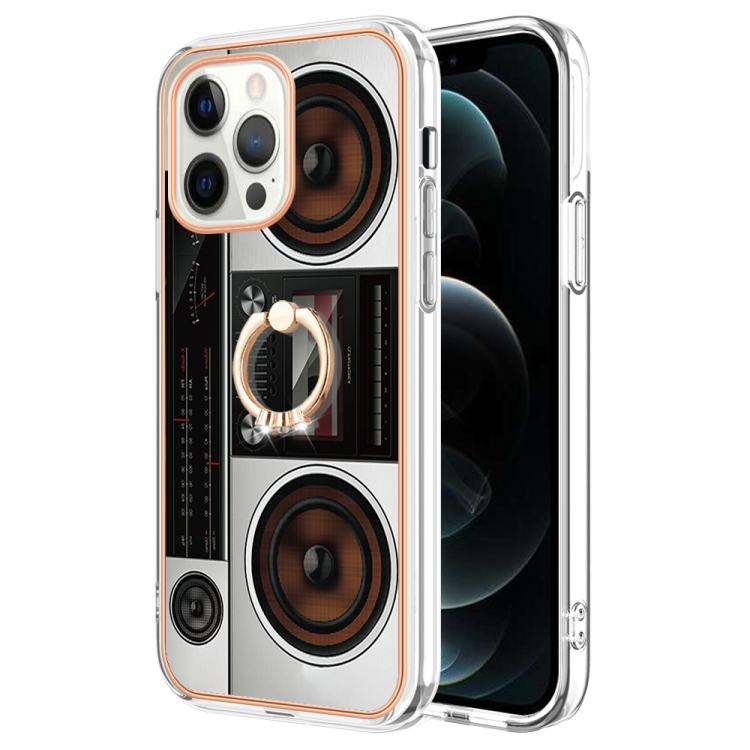 Funda para iPhone 12 Pro Max Galvanoplastia Imd Doble Cara con Soporte para Anillo (Radio Retro)