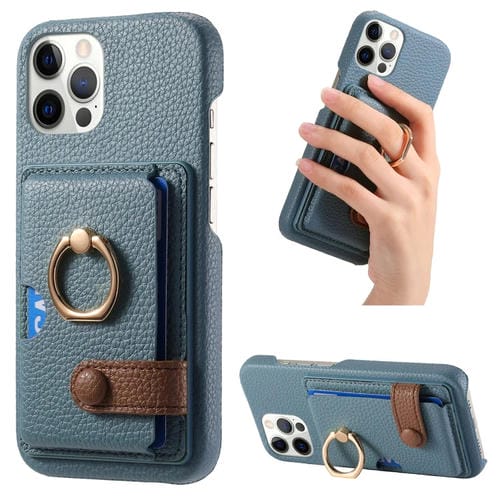 Funda para Teléfono iPhone 12 Pro Max Litchi Leather Oil Edge Ring Card Back (Azul Claro)