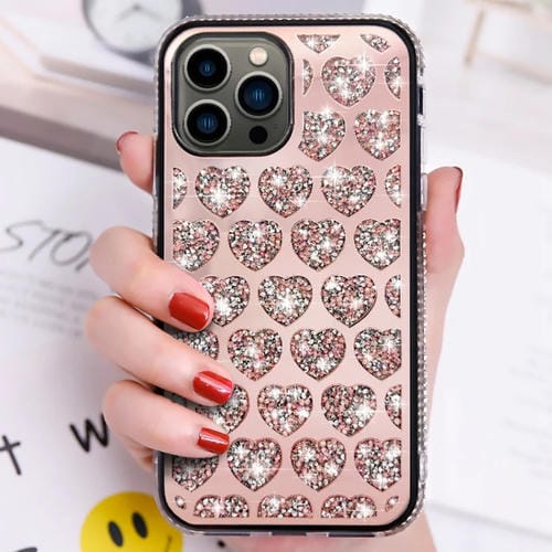 Funda para Teléfono TPU Love Hearts Diamond Mirror iPhone 12 Pro Max (Oro Rosa)