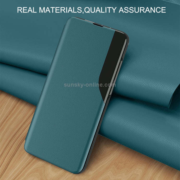 Funda de Cuero para iPhone 12 Pro Max con Pantalla Lateral, Tapa Horizontal Magnética, Soporte y Protección a Prueba de Golpes (Verde)