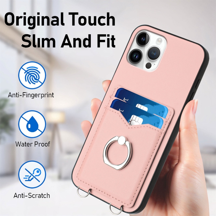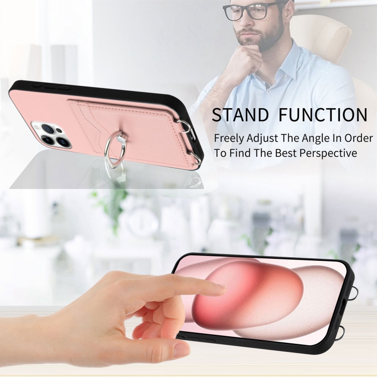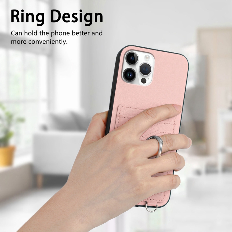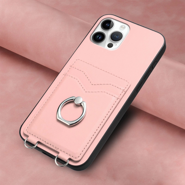 Estuche para teléfono iPhone 12 Pro Max R20 con soporte para tarjeta con anillo (Rosa)