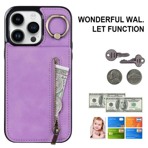 Funda para iPhone 12 Pro Max Retro Ring y Zipper con Ranura Rfid para Tarjeta (Púrpura)