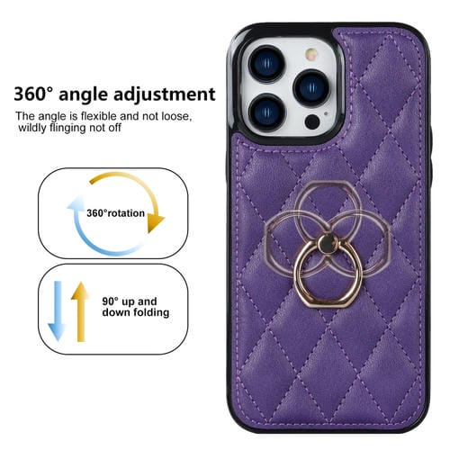 Funda para Teléfono iPhone 12 Pro Max Rhombic PU Cuero con Soporte para Anillo (Púrpura)
