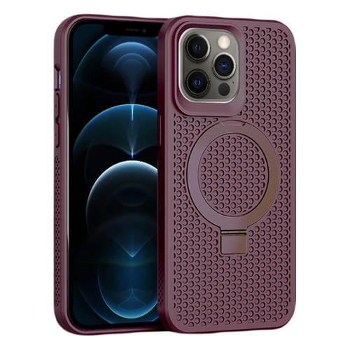 Funda para iPhone 12 Pro Max Skin Feel PC + TPU Magnética con Enfriamiento y Soporte (Rojo Vino)