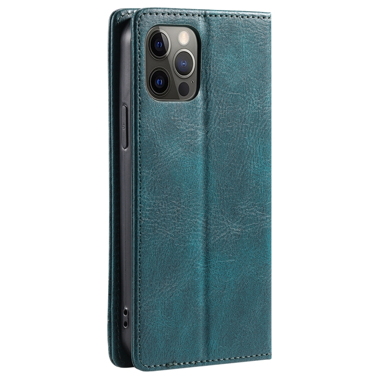 Funda de teléfono para iPhone 12 Pro Max Torch RFID de cuero magnético con textura retro (Verde)