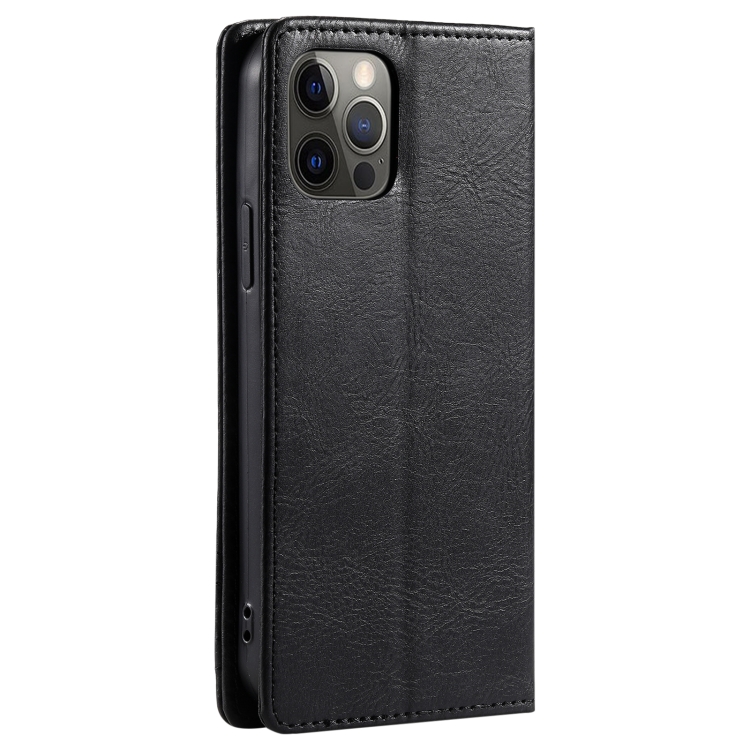 Funda de teléfono Ttudrch para iPhone 12 Pro Max Rfid cuero magnético textura retro (Negro)